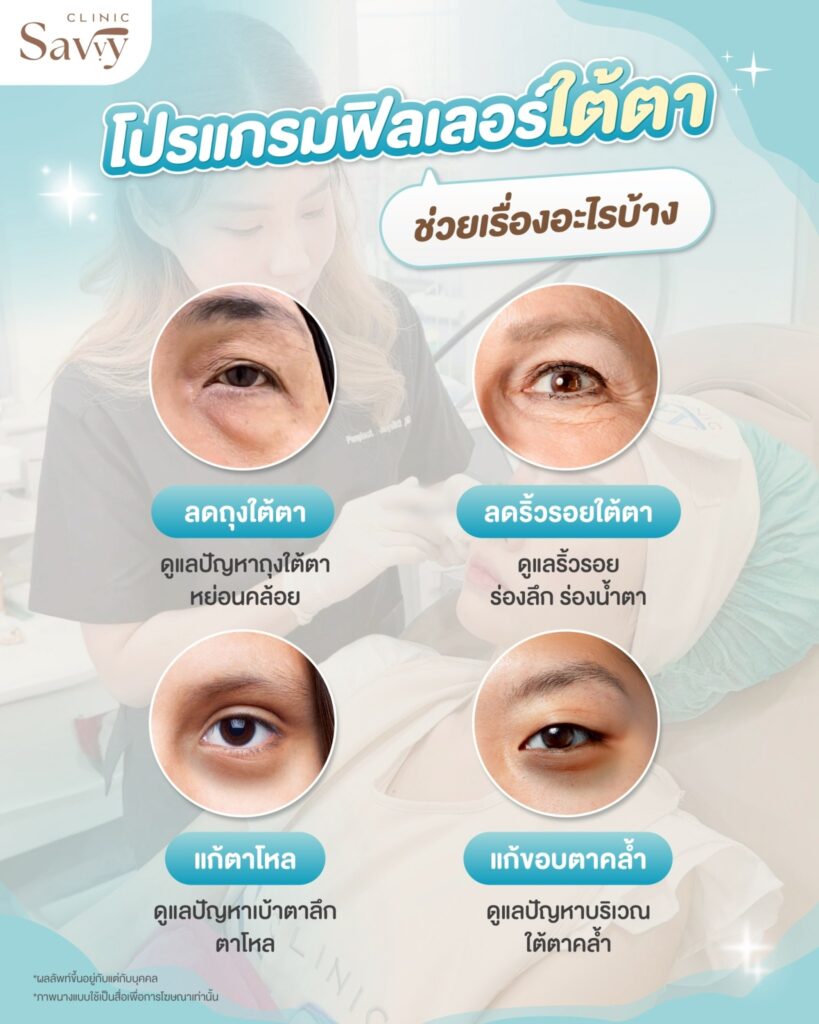 โปรแกรมฟิลเลอร์ใต้ตา คือ การฉีดสารเติมเต็ม HA เข้าไปบริเวณใต้ตา ซึ่งช่วยให้ใต้ตากลับมาสดใส ดูเรียบเนียนขึ้นหลังฉีดทันที หลายท่านคงมีคำถามในใจว่า ปัญหาแบบไหนบ้าง ที่เหมาะจะทำโปรแกรมฟิลเลอร์ใต้ตา